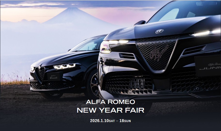 2026.01.08 ALFA ROMEO NEW YEAR FAIR 2026.1.10SAT – 18SUN 【アルファロメオ熊本】 ALFAROMEO NEWYEARFAIR 2026.1.10SAT–18SUN 新たな年を情熱的に走り出す アルファロメオのモデルと出逢う2026年初のフェア開催。 華麗なるデザイン、上質感あふれるインテリア、 そしてサーキットで培われた躍動的な走り。 あなたの心を熱くする洗練のモデルの魅力を、 お近くのショールームでご体感ください。 ※スムーズにご案内させていただくため、 事前のご来場予約をお...